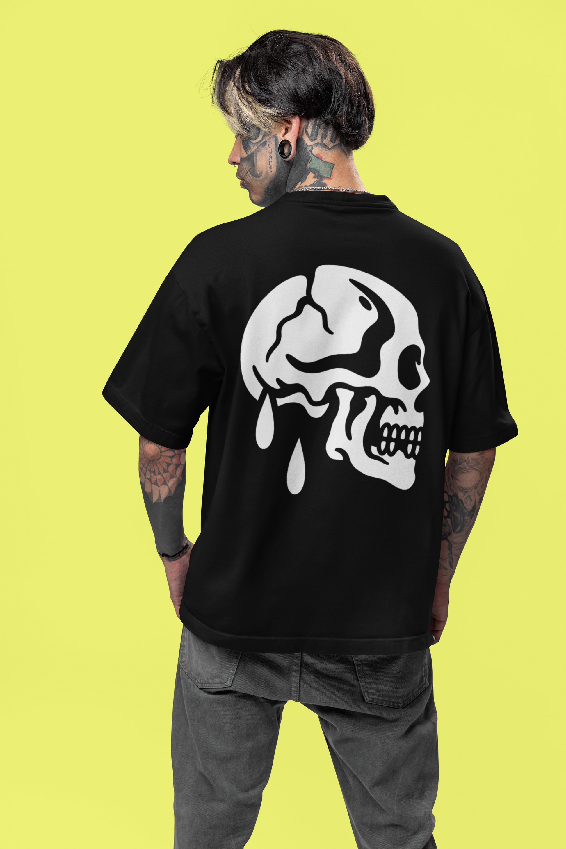 Black Flash Skull Back Print Heavyweight Unisex Crewneck T-shirt