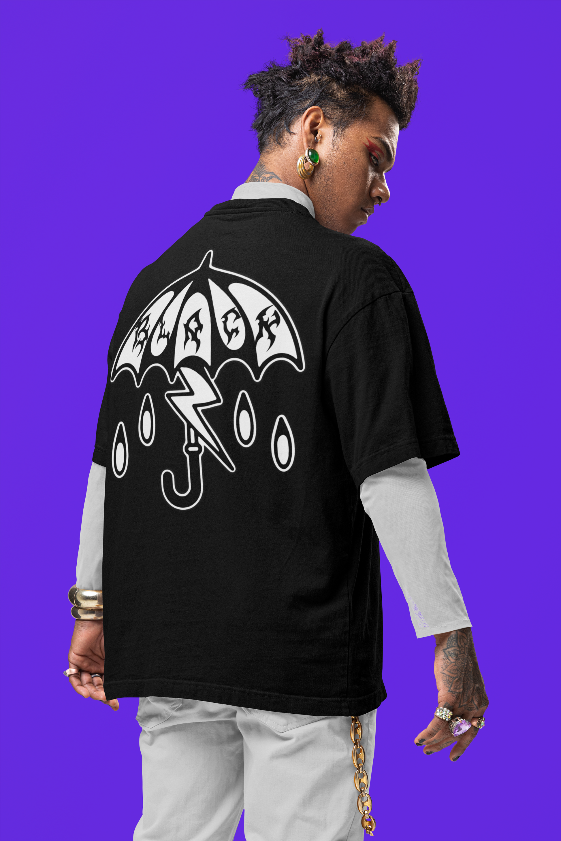 Black Flash Umbrella Front & Back Print Heavyweight Unisex Crewneck T-shirt