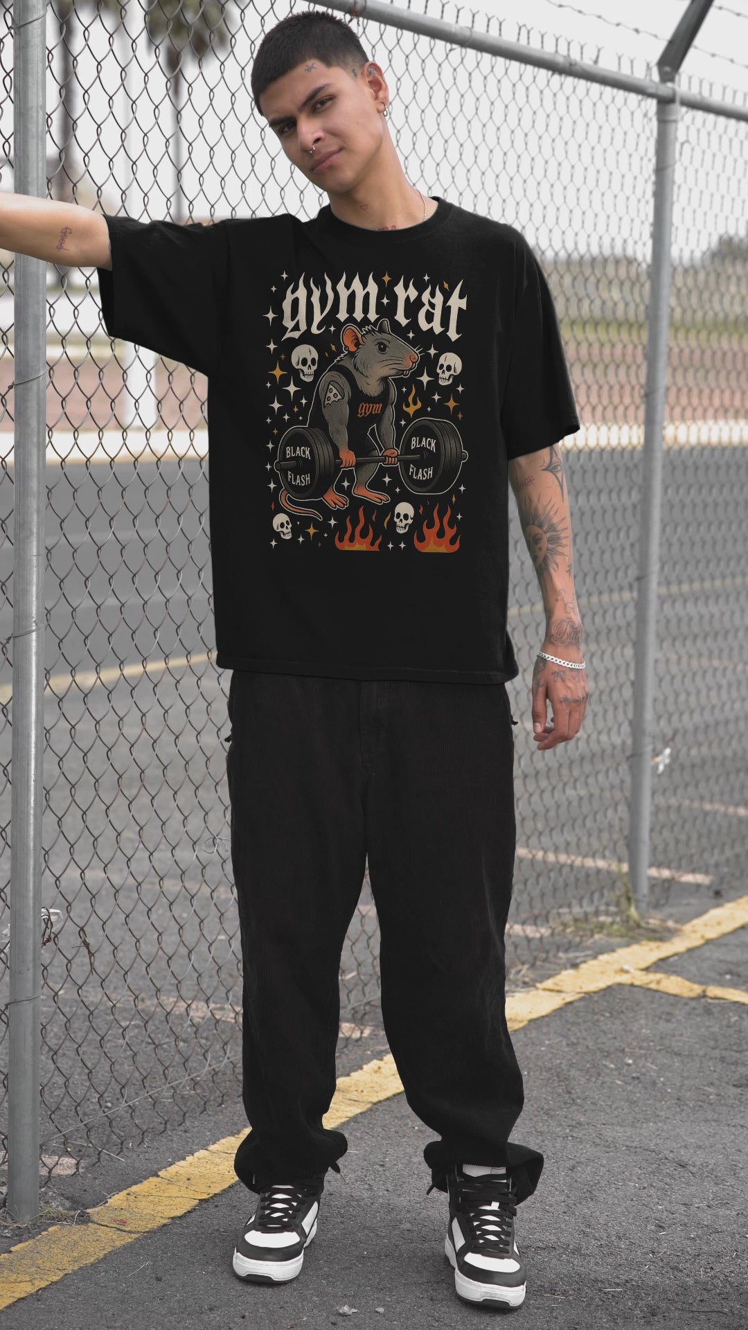 Black Gym Rat Heavyweight Unisex Crewneck T-shirt